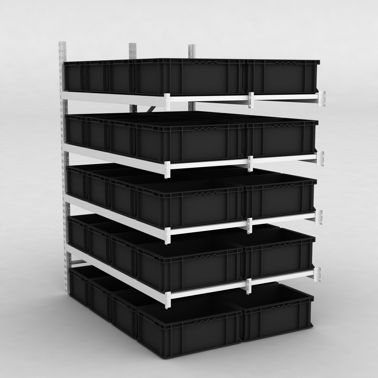 Anbaufeld für Großfachregale mit Kunststoffboxen