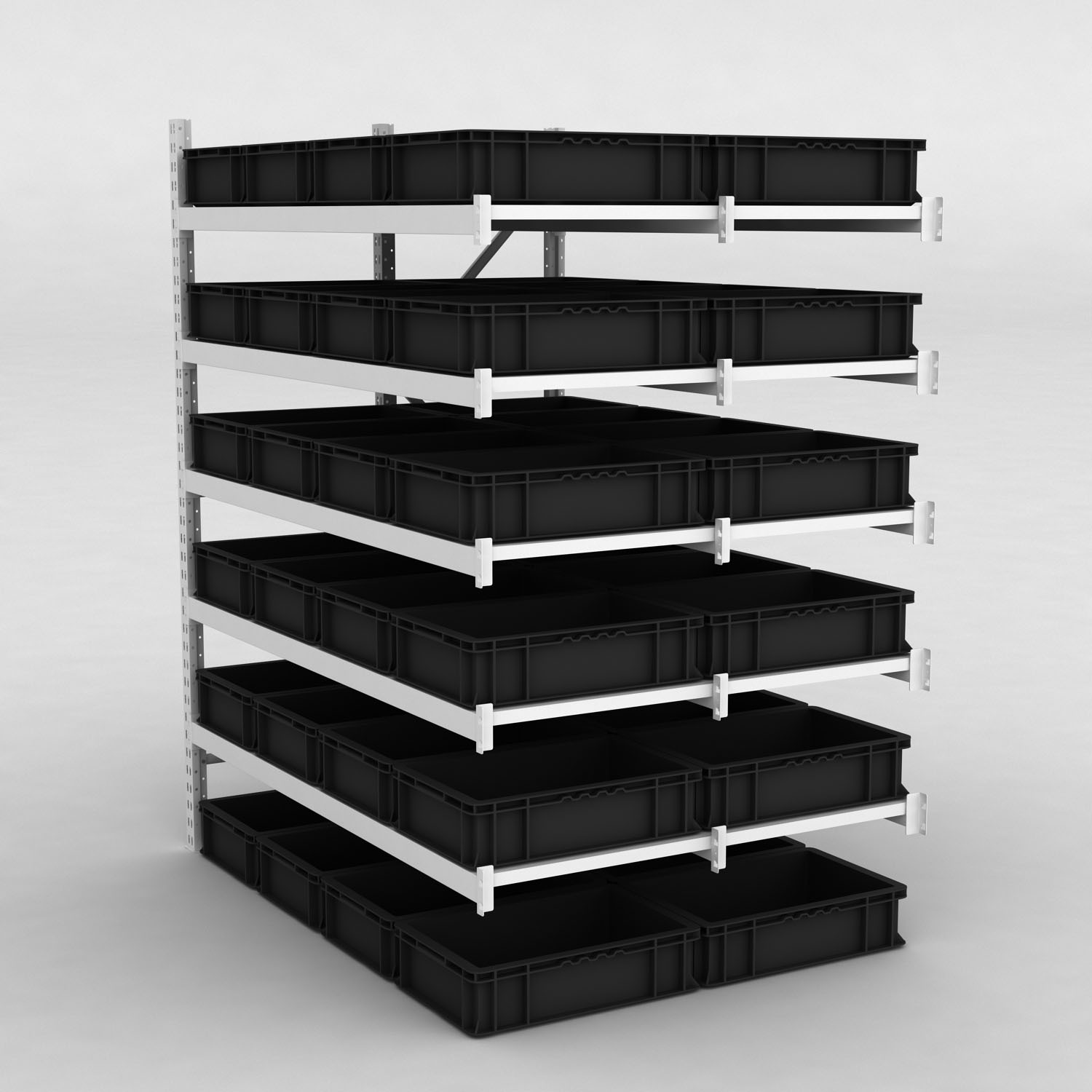 Anbaufeld für Großfachregale mit Kunststoffboxen