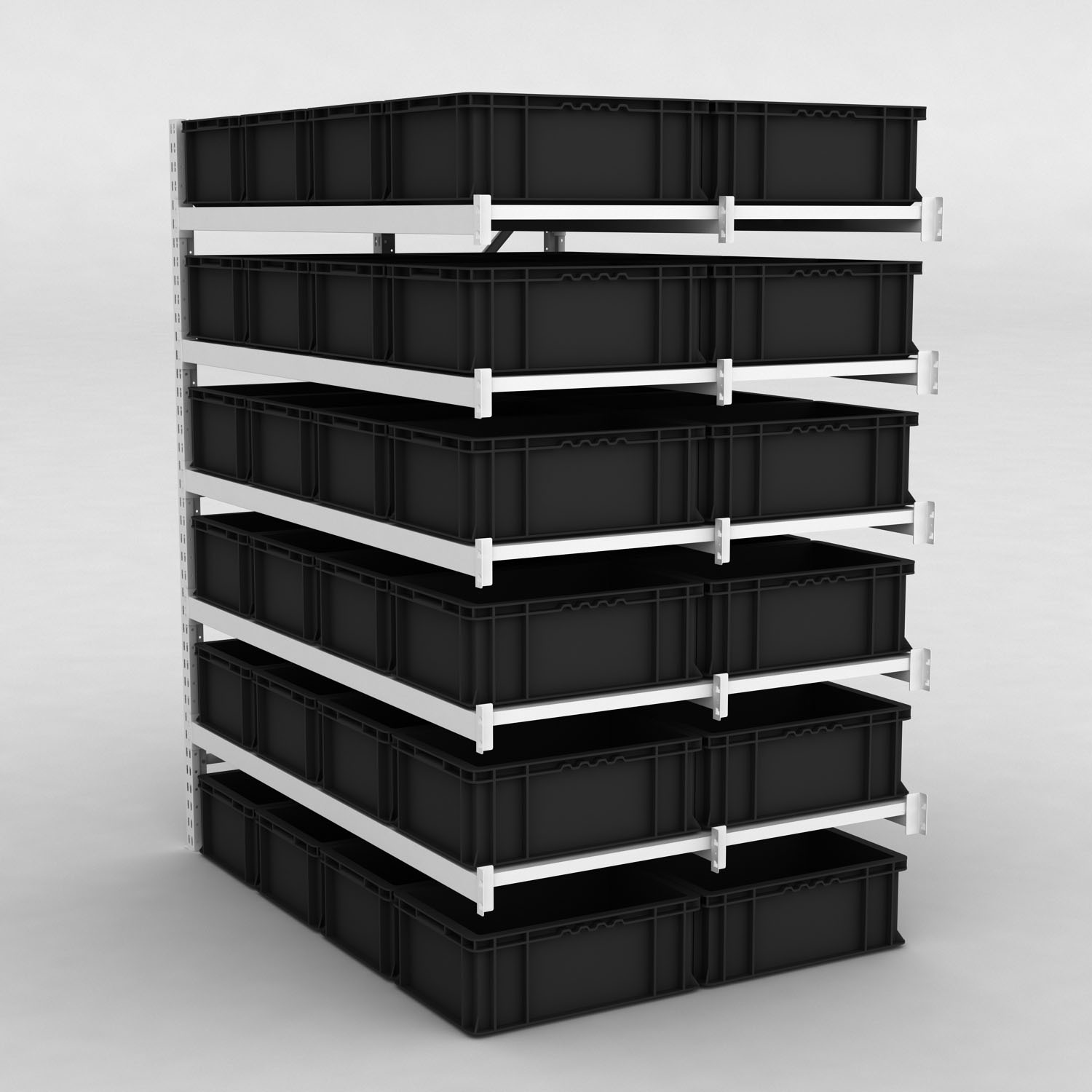 Großfachregal Anbaufeld mit 48 Kunststoffboxen in Schwarz