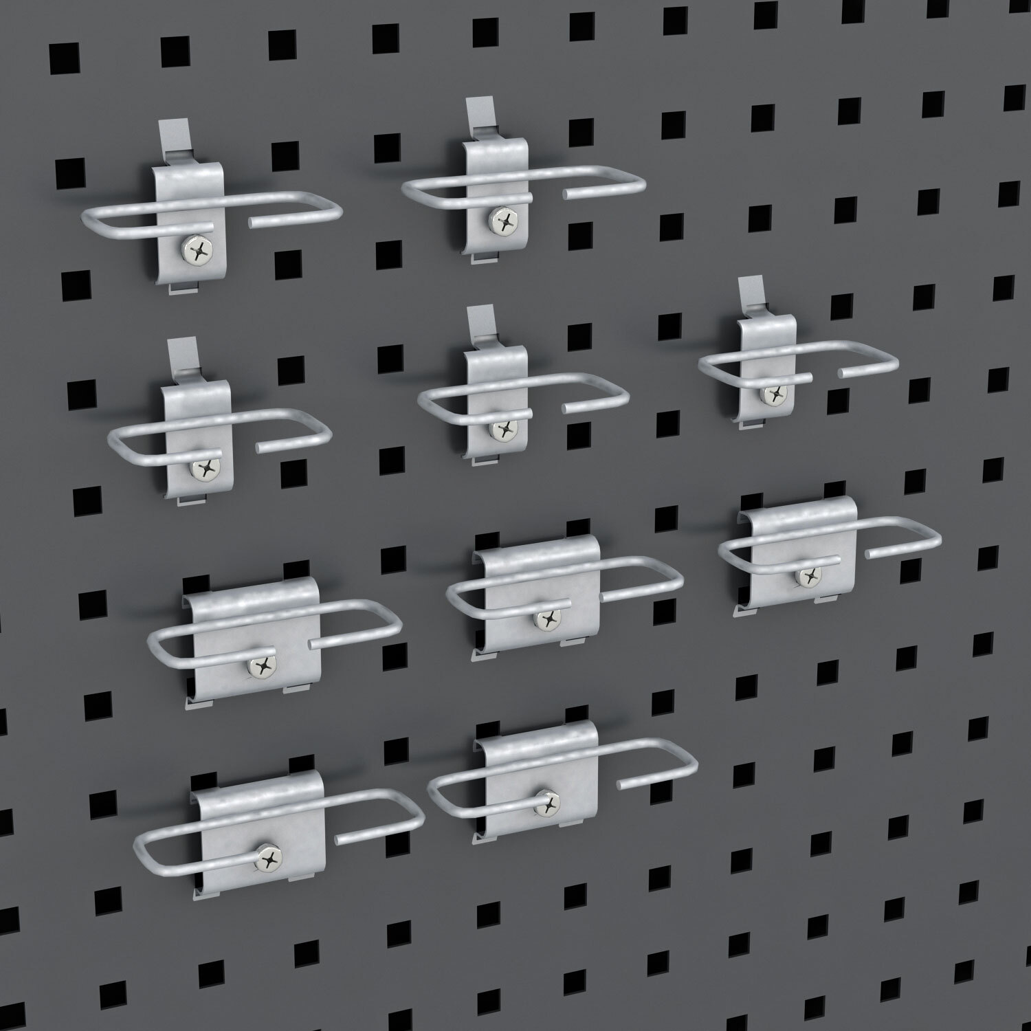 Unsere Lochwandhaken sind genau auf Ihre Anforderungen in der Werkstatt, im Lager, im Laden oder wo auch immer Sie Ihre Lochwand aufhängen, zugeschnitten. Mit 10 praktischen Haken ist diese Hakensatz so konzipiert, dass Sie Ihre Werkzeuge, Geräte und Zubehör einfach und übersichtlich organisieren und aufbewahren können. Die Haken passen perfekt zu unseren Lochwänden, damit Sie den Platz optimal ausnutzen und alle notwendigen Werkzeuge griffbereit haben. Dadurch wird Ihre Arbeit effizienter und Ihre Werkstatt verbleibt aufgeräumt und übersichtlich.