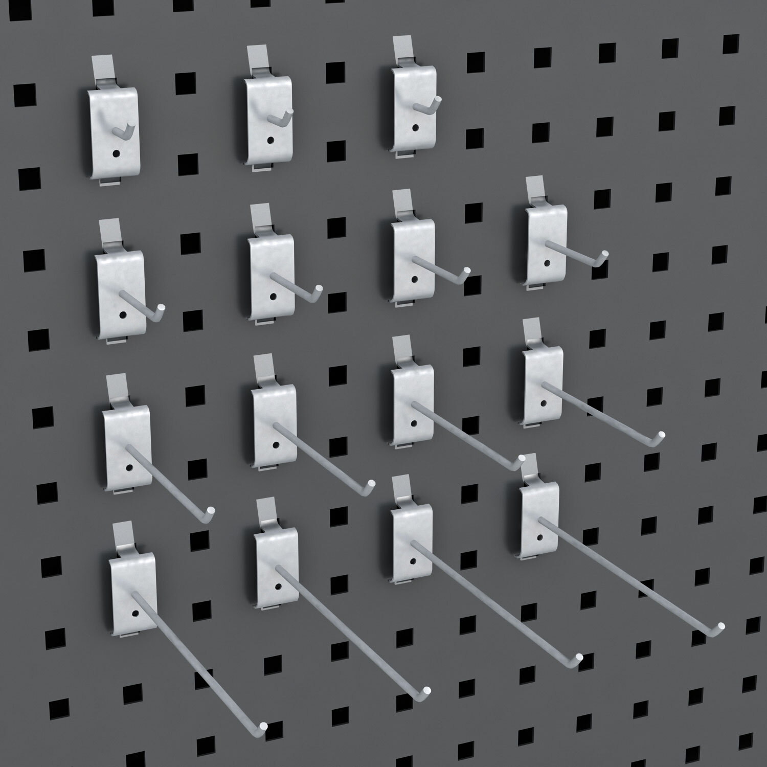 Unsere Lochwandhaken sind genau auf Ihre Anforderungen in der Werkstatt, im Lager, im Laden oder wo auch immer Sie Ihre Lochwand aufhängen, zugeschnitten. Mit 15 praktischen Haken ist diese Hakensatz so konzipiert, dass Sie Ihre Werkzeuge, Geräte und Zubehör einfach und übersichtlich organisieren und aufbewahren können. Die Haken passen perfekt zu unseren Lochwänden, damit Sie den Platz optimal ausnutzen und alle notwendigen Werkzeuge griffbereit haben. Dadurch wird Ihre Arbeit effizienter und Ihre Werkstatt verbleibt aufgeräumt und übersichtlich.