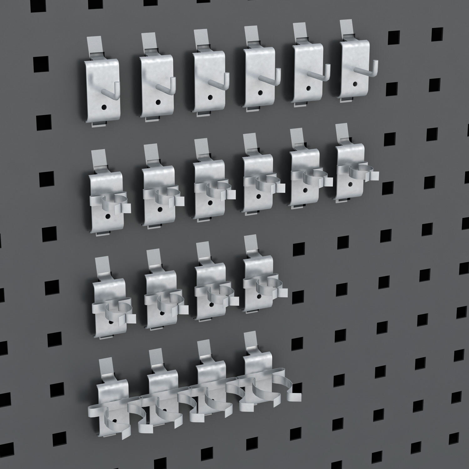 Unsere Lochwandhaken sind genau auf Ihre Anforderungen in der Werkstatt, im Lager, im Laden oder wo auch immer Sie Ihre Lochwand aufhängen, zugeschnitten. Mit 20 praktischen Haken ist diese Hakensatz so konzipiert, dass Sie Ihre Werkzeuge, Geräte und Zubehör einfach und übersichtlich organisieren und aufbewahren können. Die Haken passen perfekt zu unseren Lochwänden, damit Sie den Platz optimal ausnutzen und alle notwendigen Werkzeuge griffbereit haben. Dadurch wird Ihre Arbeit effizienter und Ihre Werkstatt verbleibt aufgeräumt und übersichtlich.