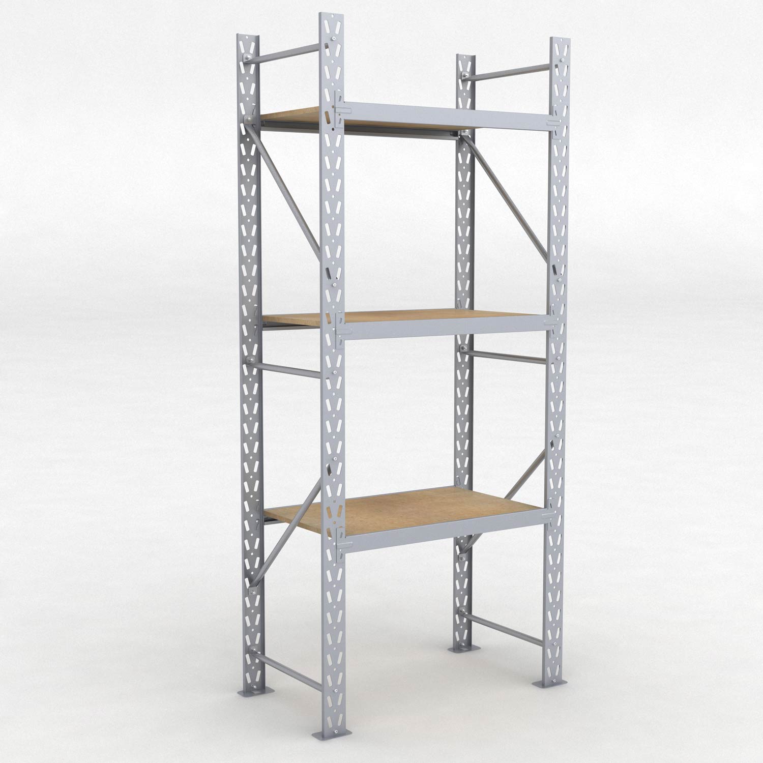 Robustes Lagerregal aus verzinktem Stahl mit Holzfachböden