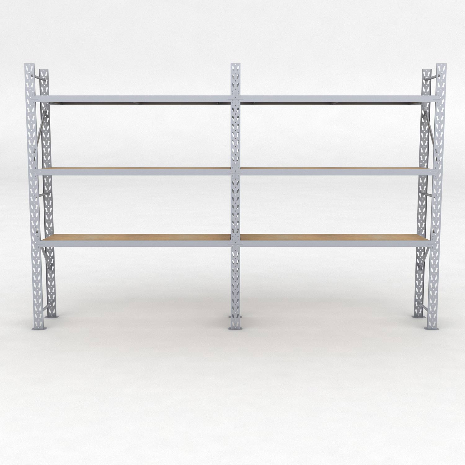 Robustes Lagerregal aus verzinktem Stahl mit Holzfachböden