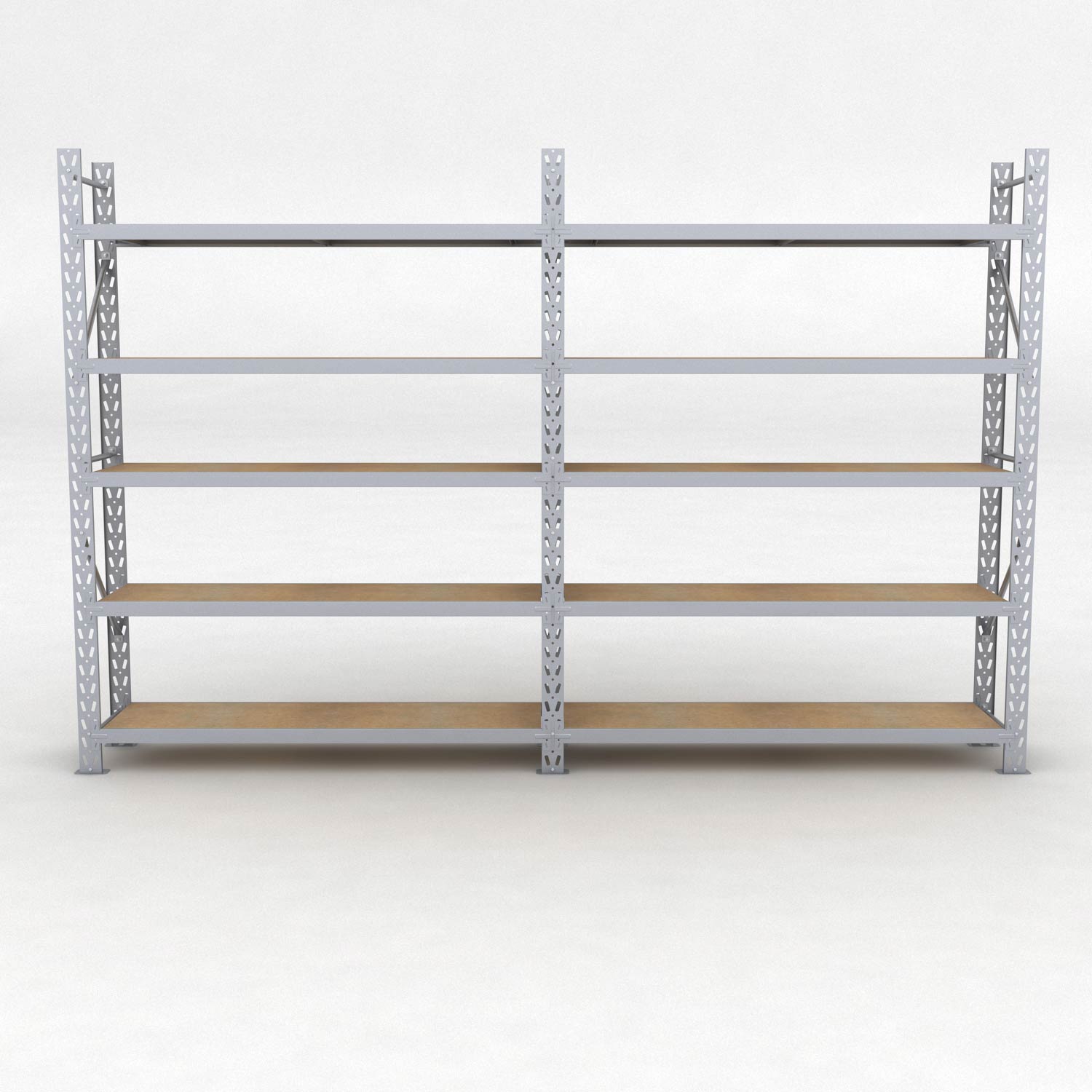 Robustes Lagerregal aus verzinktem Stahl mit Holzfachböden