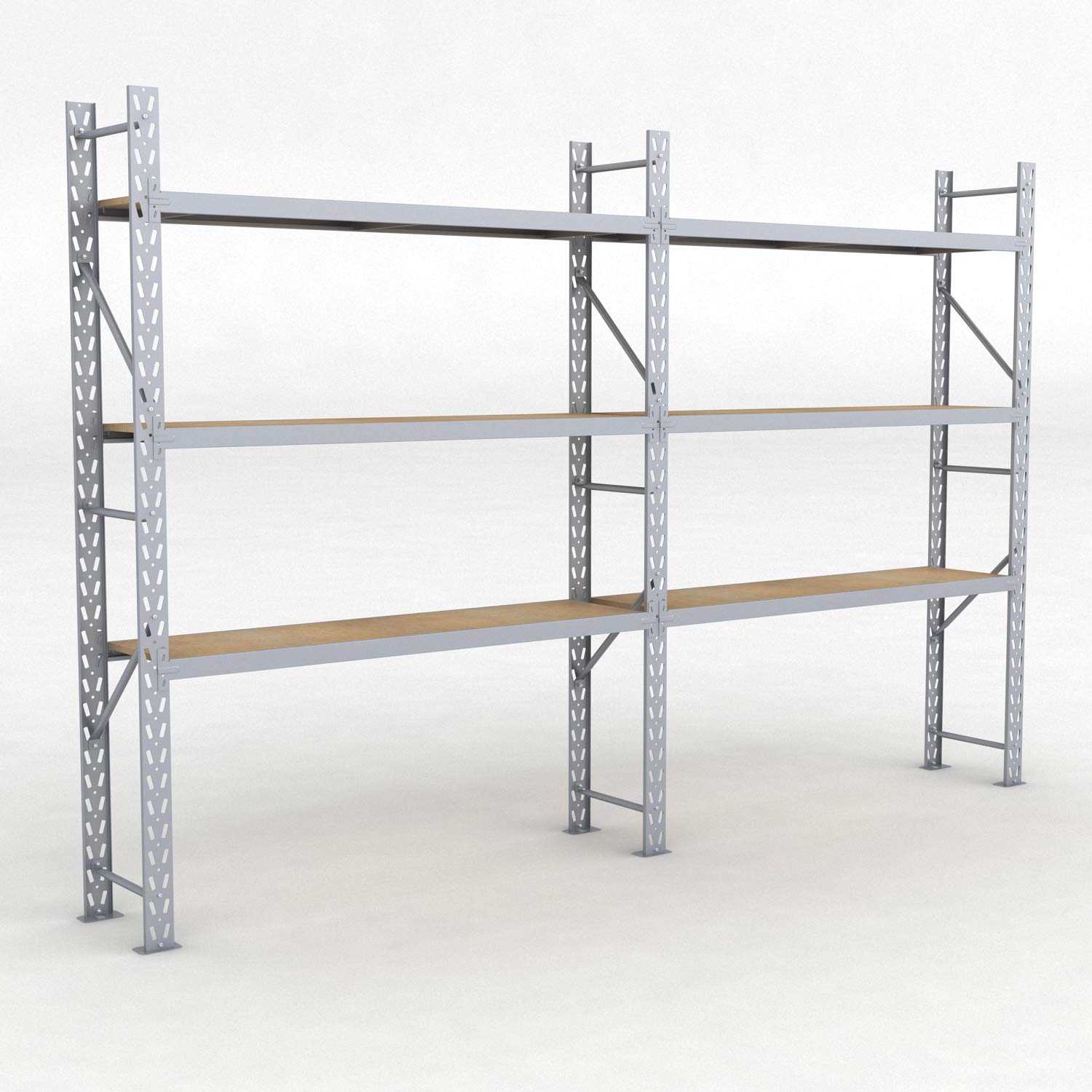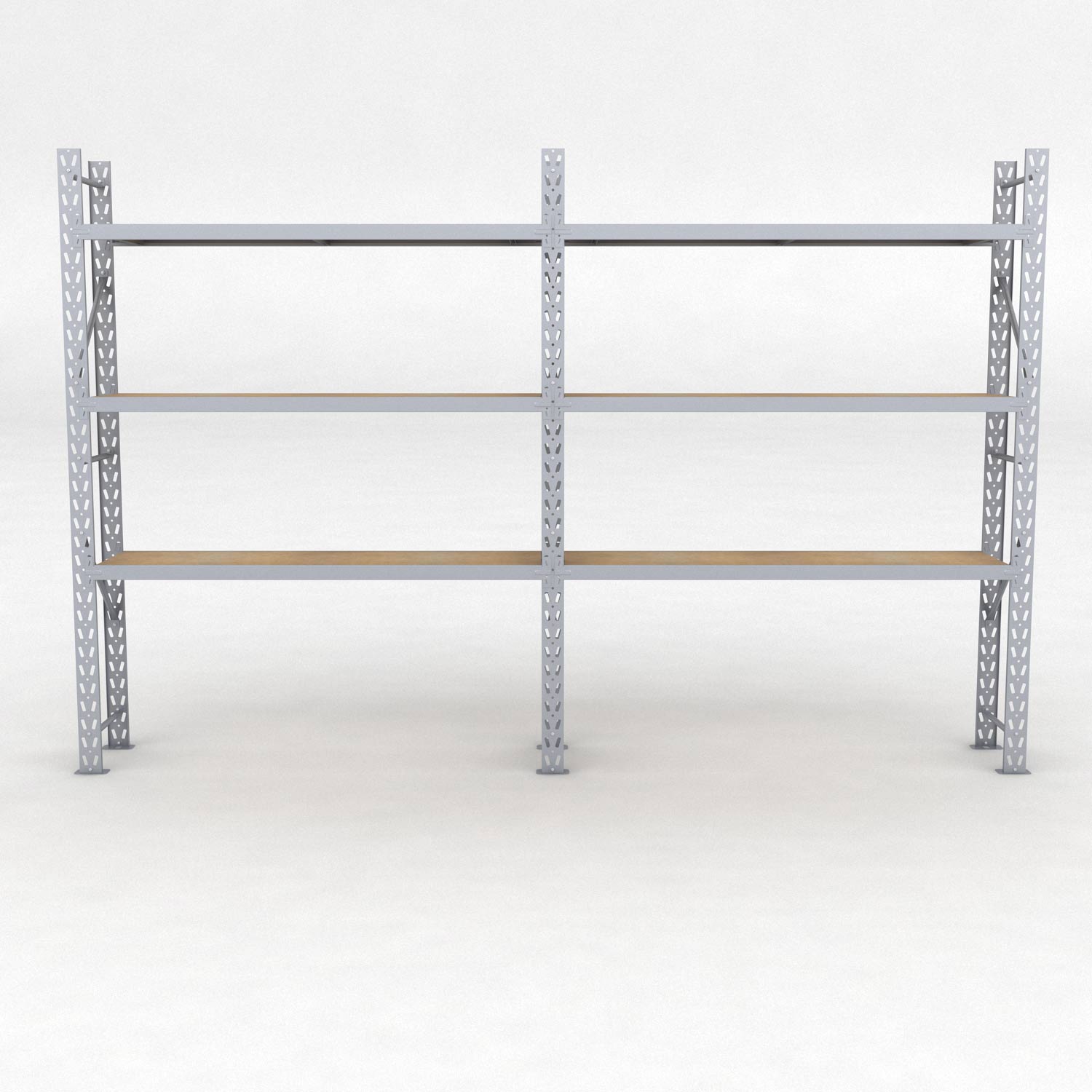 Robustes Lagerregal aus verzinktem Stahl mit Holzfachböden