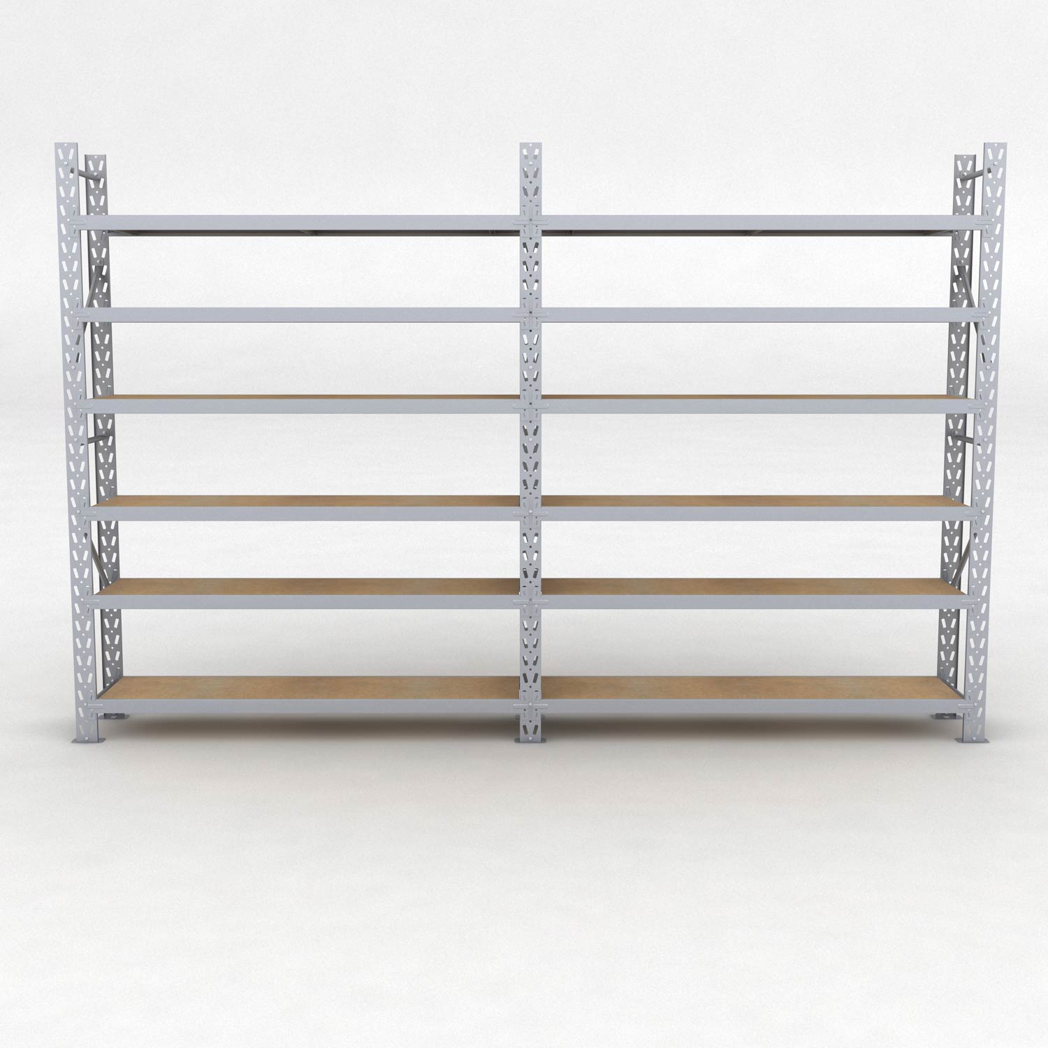 Robustes Lagerregal aus verzinktem Stahl mit Holzfachböden