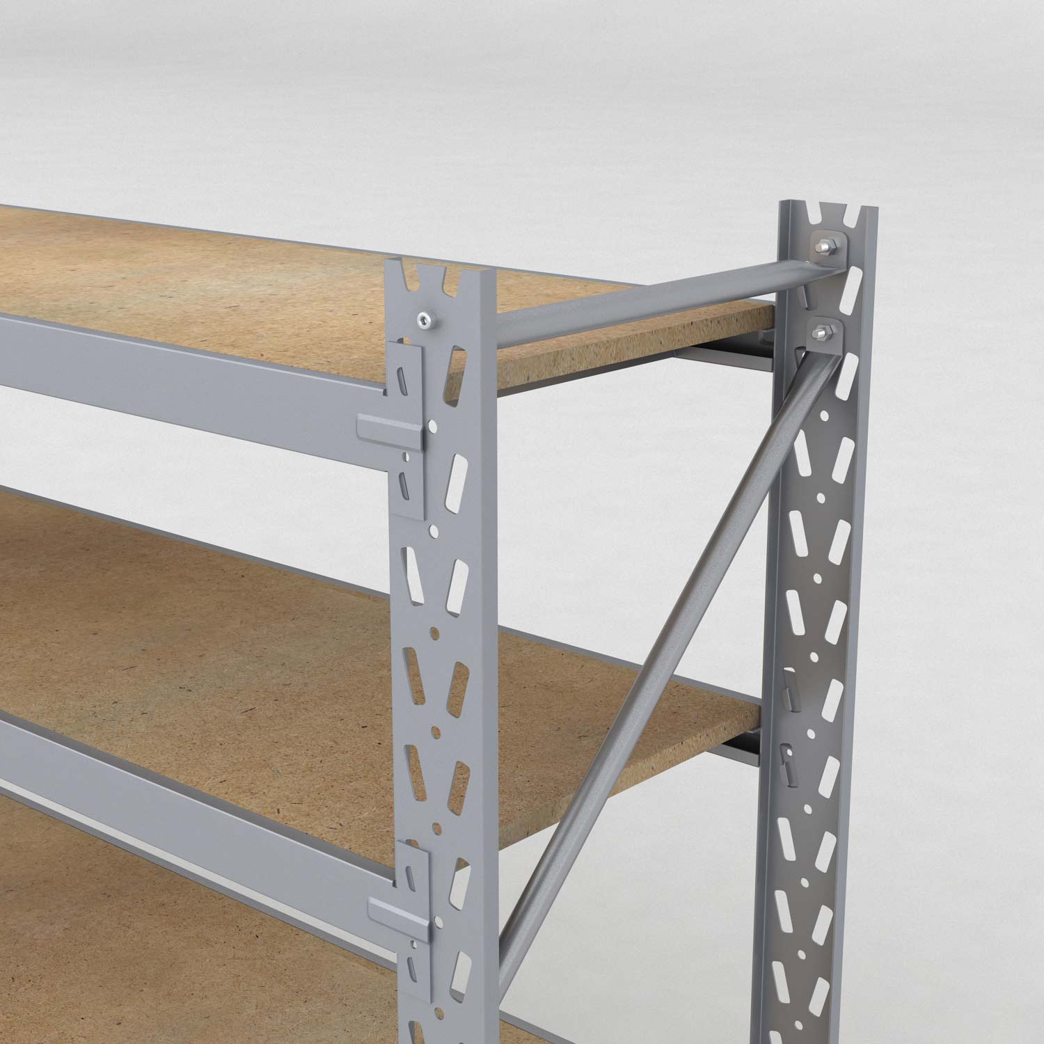 Die herausnehmbaren Fachböden bestehen aus 19 mm starken Spanplatten. Sie eignen sich besonders für Webshops oder Kommissionierlager, in denen die Reinigung der Regale auf ein Minimum reduziert werden muss. Außerdem sorgt die Oberfläche dafür, dass die Produkte einen guten Halt haben und sich hervorragend mit anderen Lagerregalen messen können.
