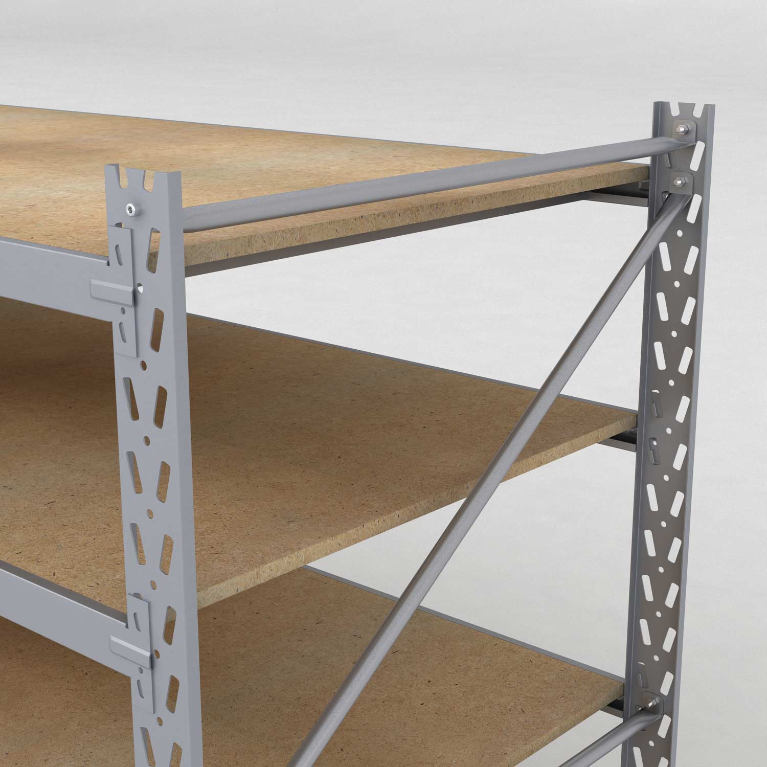 Die herausnehmbaren Fachböden bestehen aus 19 mm starken Spanplatten. Sie eignen sich besonders für Webshops oder Kommissionierlager, in denen die Reinigung der Regale auf ein Minimum reduziert werden muss. Außerdem sorgt die Oberfläche dafür, dass die Produkte einen guten Halt haben und sich hervorragend mit anderen Lagerregalen messen können.